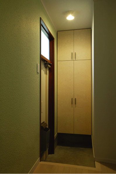 ●オフホワイト色の自然塗料で仕上げたフィンランドバーチ材のカウンターとタイルカウンターを組み合わせました。