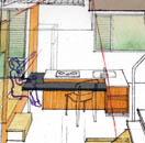 Bタイプはちょっと背の高い壁でキッチンをガード。正面からは見ず、すっきりとした印象を与えます(写真右上)。