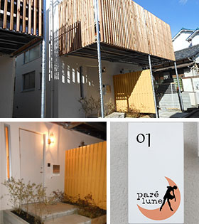 駅近でありながら、静かな場所にある「パレ リュンヌ」は、ほんのわずかなスロープに、ほんのわずかにカーブした場所にある、メゾネットタイプのテラスハウス。