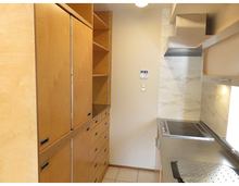 キッチンにも驚異的な収納力とIHクッキングヒーターが備わっており、キッチンまわりの小物から食器まですべてが収納出来ます。